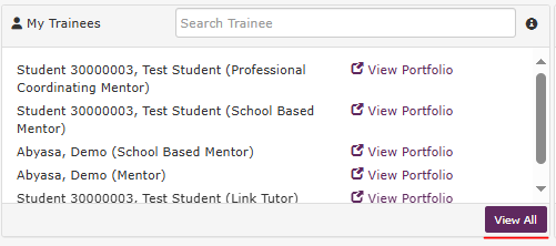 1) Navigate to View All in your My Trainee’s section. Here you will be able to view a full list of all the trainees we have you allocated as a mentor for.