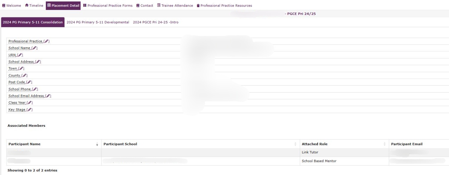 Here you will be able to view the placements Link tutor information under Associated Members. The link tutors email address is available in the Participant Email column should you wish to contact them.
