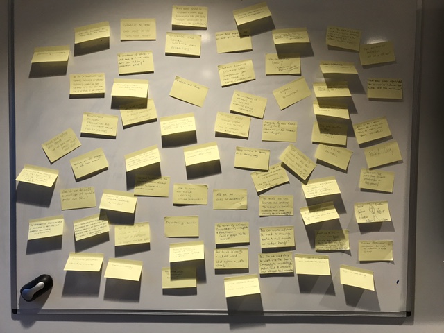 Ideas wall in response to themes raised in the ‘Who speaks on behalf of nature’ event (2020)