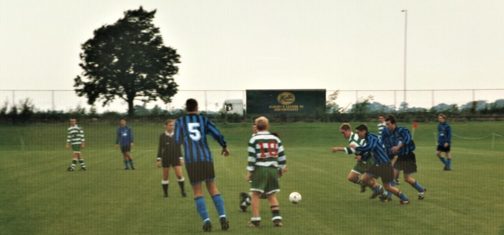 These two photographs are of a football match played at Edge Hill in the 1990s. We don’t know who the teams are or who the individual players are. However, it is likely that some of them were Edge Hill students at the time.