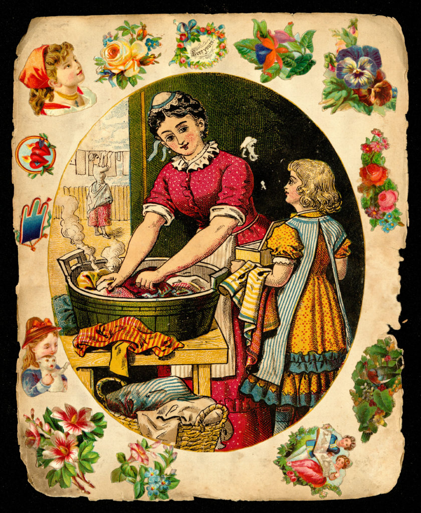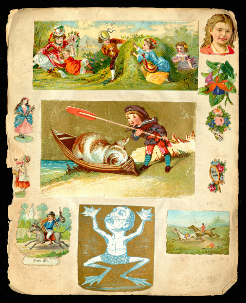 Scrapbooks can tell us about the time in which they were constructed as they included, for example, domestic or work scenes, pictures about contemporary rhymes or fairy stories and about seasonal practices like putting up a Christmas tree and decorations.